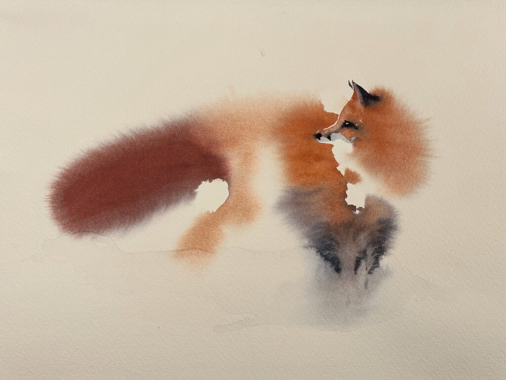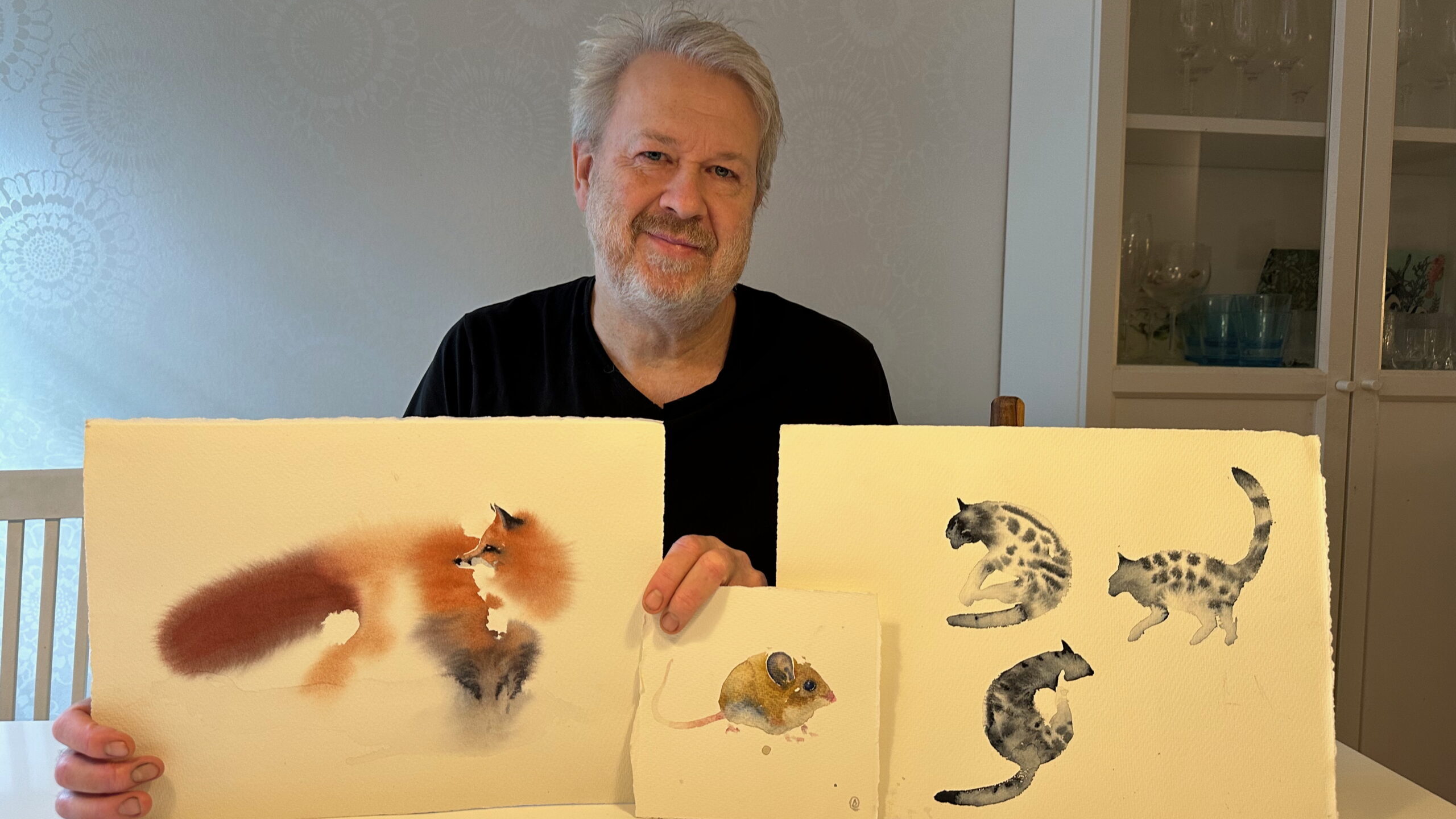 Motiv som elefanter, räv, katter, och andra djur. Handledning och feedback ingår i akvarellkursen.